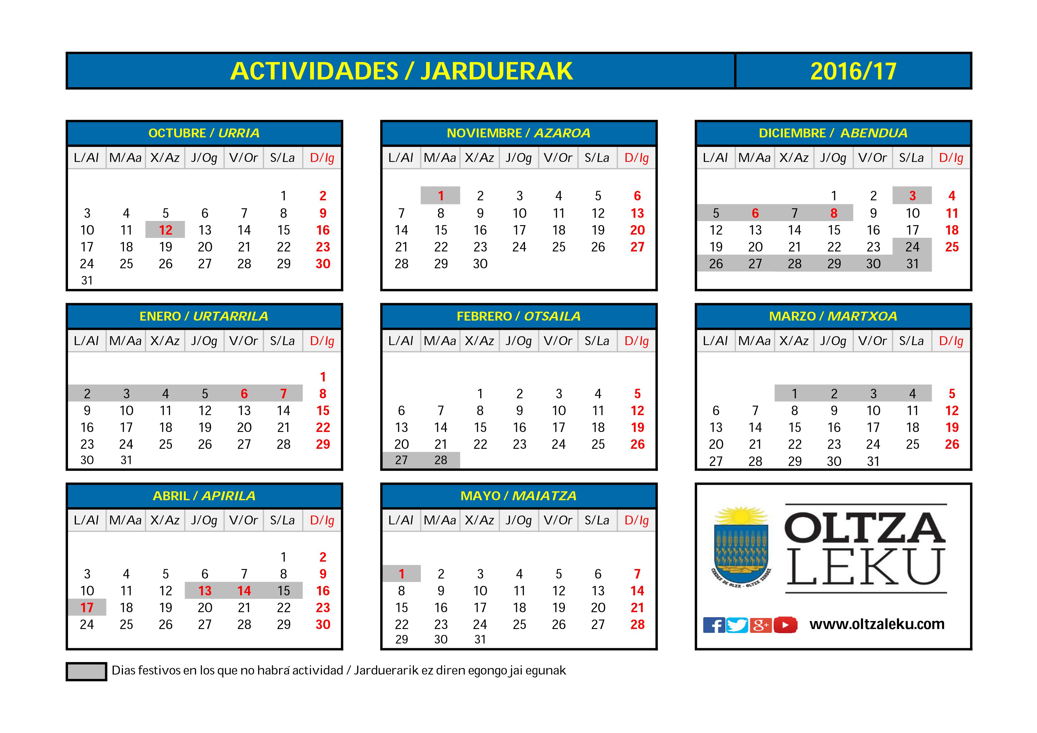 calendario-actividades-oltzaleku-2016-17